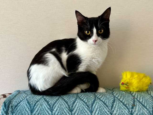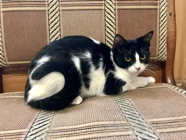 Черно белая красотка Клёпка ищет дом.