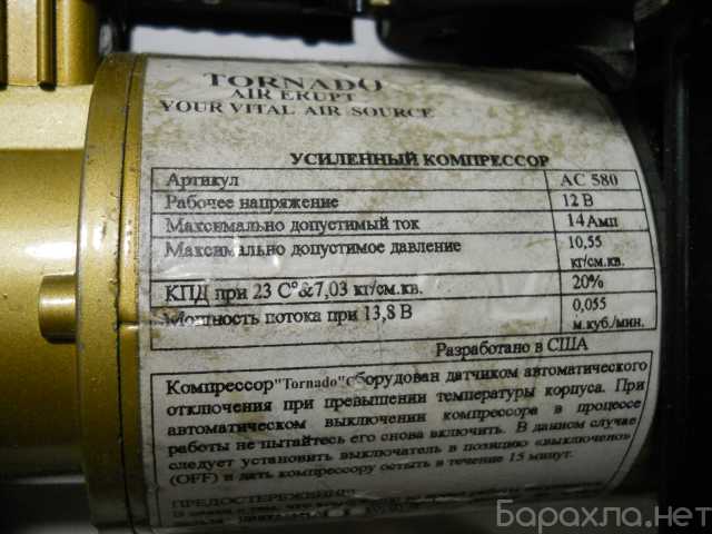 Компрессор торнадо ,не новый ,работает, менялся шнур ,и штекер ,шнур теперь короткий -1 метр, штуцер накидной.