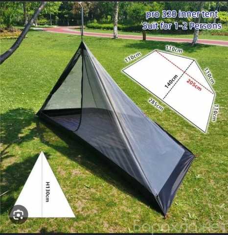 В идеальном состоянии, по размеру как половина внешней палатки. Дно с бортиком, стены сеткой. 285x140x130 см. Вес 0,7 кг